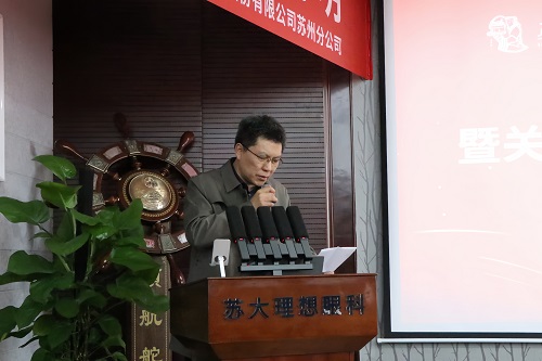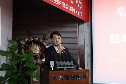 蘇州大學理想眼科醫院副院長尤海章致辭,他表示,眼健康是國民健康的重要組成部分之一涉及全年齡段生命周期,是涉及民生福祉的公共衛生問題和社會問題。此次與東吳人壽的黨建共建是落實“健康中國”戰略的具體實踐,雙方將以黨建為紐帶,在眼健康篩查、科普宣教、公益服務等領域深化合作,讓優質眼科醫療資源惠及更多群眾。醫院黨支部作為蘇州市優秀行動支部,堅持“黨旗紅醫院興”發展理念,打造“理想之光”黨建品牌,用紅色力量激活醫院高質量發展新動能。