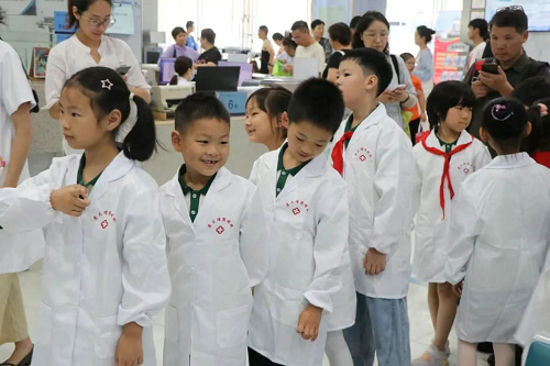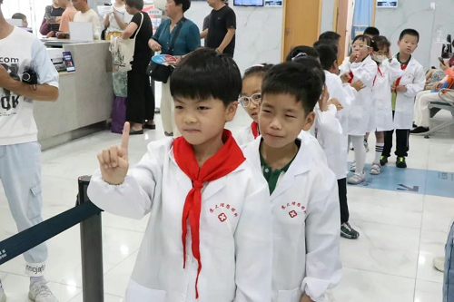 “醫生,這個‘E’字是朝左邊嗎?” 近日,我院門診大廳里傳來陣陣稚嫩又認真的對話。來自平江實驗小學一年級四班的23名小朋友,搖身一變“小小眼科醫生”,在我院開啟了一場別樣的暑期社會實踐活動。
