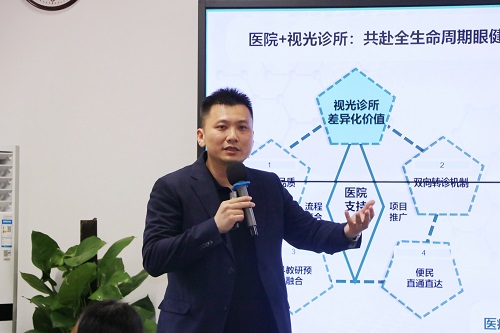 隨后,沈陽興齊眼科醫院院長黎春華分享《視光學科發展創新增長分享》。黎春華是中共黨員、遼寧省政協委員,身兼多項社會職務,獲多項榮譽。他提出,視光學科發展中要普及近視防控知識,如宣傳正確讀寫姿勢,家長需幫助孩子養成習慣。