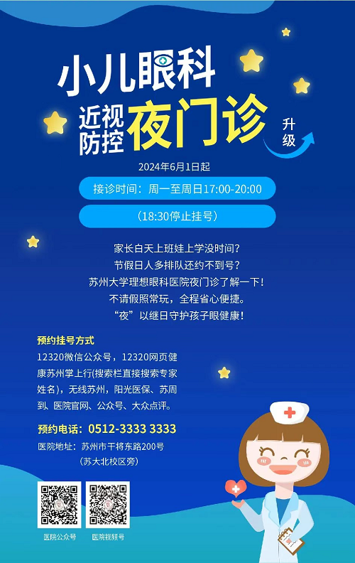 若白天時間不方便,醫院已加開小兒眼科夜門診(17:00–20:00),驗光、配鏡、視功能檢查、復查等全部開放。