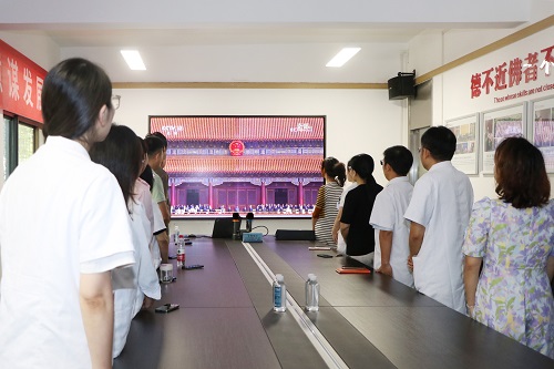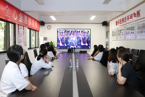 為深切緬懷抗戰先烈、傳承偉大抗戰精神,醫院響應號召,組織全體員工觀看紀念閱兵式。醫院領導班子與全體黨員齊聚會議室,目光聚焦屏幕,沉浸閱兵盛況。
