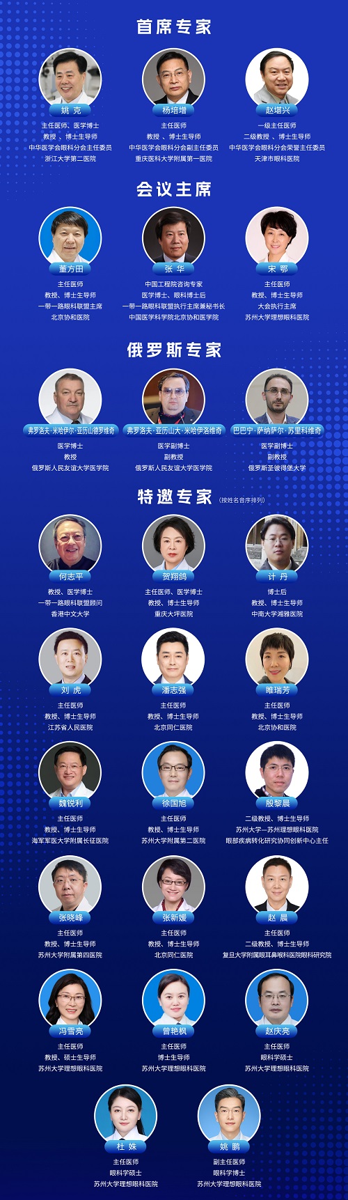 嘉賓陣容。本次會議匯聚中俄兩國眼科領域的學術中堅力量,既有深耕臨床與科研多年的中外學科帶頭人,也有在細分領域下擁有豐富經驗的臨床骨干醫師。嘉賓將圍繞各自擅長領域,交流前沿研究進展。