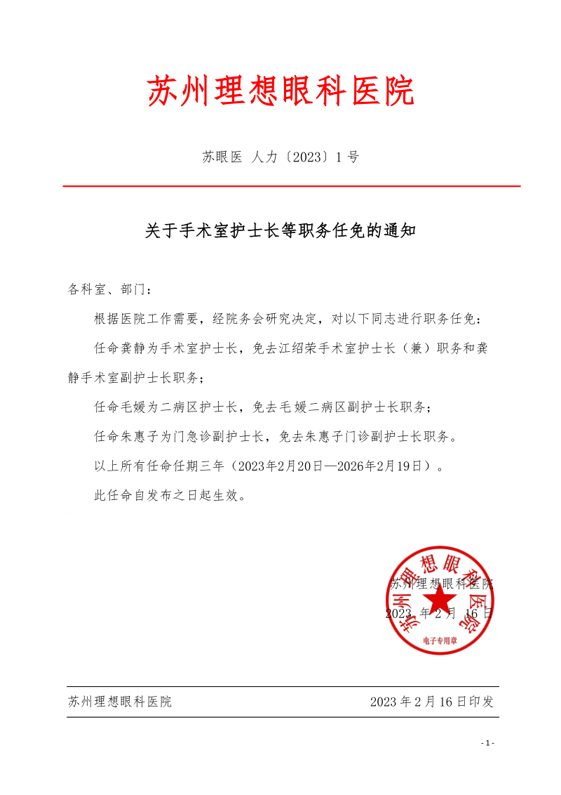 蘇州理想眼科醫院2022年度醫療質量與安全管理考核方案